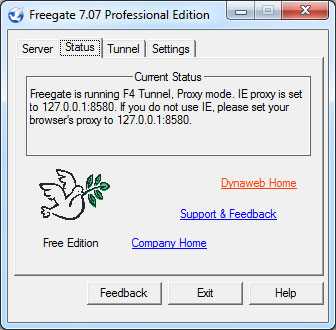 Chương trình này giúp người dùng Internet truy cập mạng nhanh và ổn định hơn. Nhiều người sử dụng nói Freegate là việc lướt web trên internet nhanh như local vậy. Nếu bạn lựa chọn ngôn ngữ nào đó mà không hiển thị được thì hãy tải xuống "dynamic link library (.dll)" từ Dynaweb, đặt nó vào thư mục của Free Gate, sau đó khởi động lại chương trình.