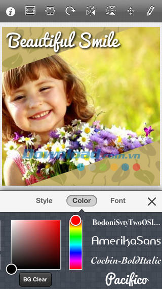 Bạn muốn gửi gắm một thông điệp ý nghĩa kèm theo ảnh? Bổ sung những dòng chữ tuyệt đẹp vào ảnh với nhiều kiểu phông chữ và phong cách khác nhau. Thực tế, người dùng không cần một bức ảnh cụ thể. Bạn hoàn toàn có thể tạo nên một thiết kế ảnh với màu nền có sẵn, họa tiết và kiểu đường viền, sau đó nhập tin nhắn kèm theo.