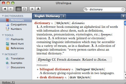 - Kéo và thả, cho phép bạn kéo từ giữa Ultralingua và các ứng dụng khác.
